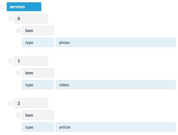 In the JSON tab, click the "+" next to "Services" to see the drop-down options.