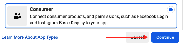 4. Check the box to certify Compliance with Platform Terms and Developer Policies and click "Continue"