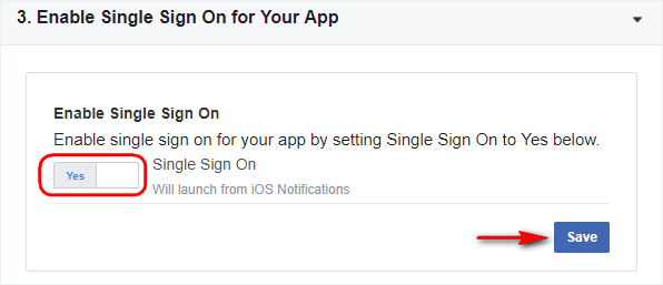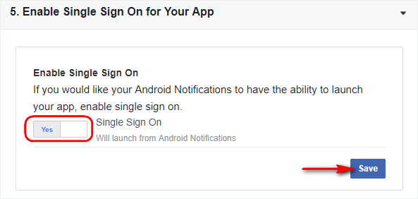 10. Click "Continue" to reach step 5. Enable Single Sign On for Your App