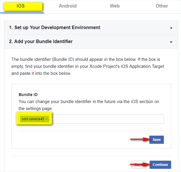 1. Click "Next" to reach step 2 -- Add your Bundle identifier