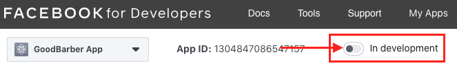 1. Toddle the button to make your App public in the top bar of Facebook platform