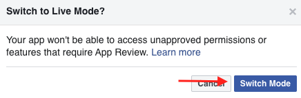 1. Go to the menu App review > Permissions and features on Facebook platform