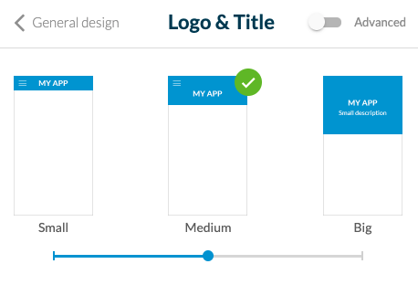In the Logo menu, if you selected a Big template, you can set a short description that is shown in your header above the logo of your app.