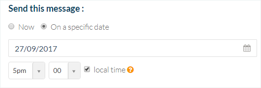 *Check the option "Local time" if you want all of your users to receive the push notification at the same time of their day (when waking up, at lunch time, bedtime, etc.).
