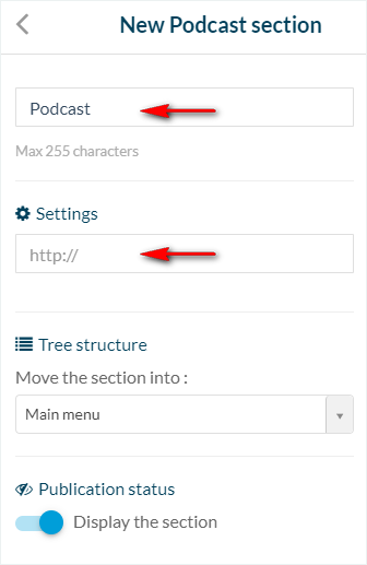 2. Fill in the URL of your Spreaker RSS feed* in the section settings that have been created