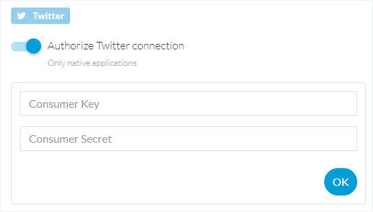 If you have activated the Authentication extension, you have the option to allow your users to log into your app with their Twitter account (native apps only).